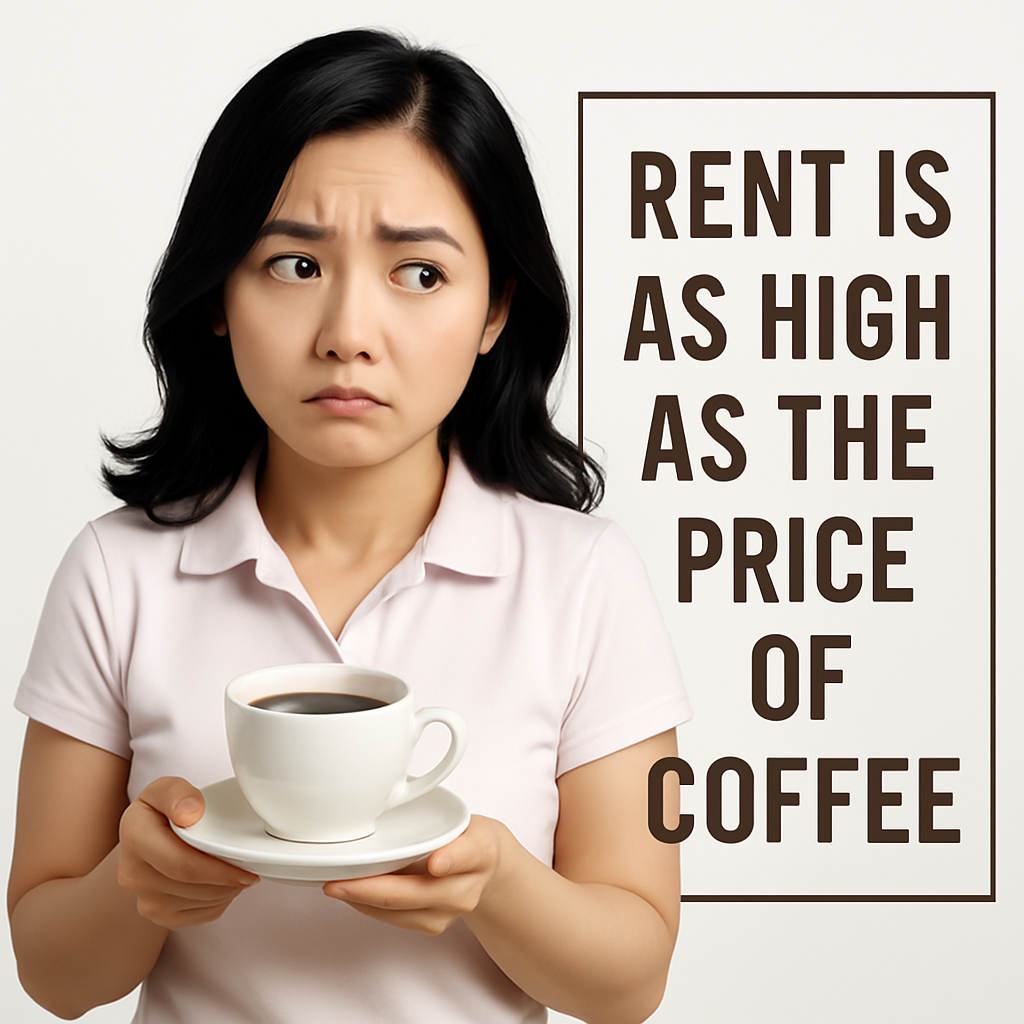Não entendeu nada? Está escrito em inglês mas nada tão brasileiro como essa frase: “O ALUGUEL ESTÁ EM ALTA IGUAL AO VALOR DO CAFÉ”. O café é nosso e o aumento do número de pessoas pagando aluguel também. O número de pessoas que vivem em imóveis alugados vem aumentando nas últimas décadas. Novos dados do Censo 2022, divulgados pelo Instituto Brasileiro de Geografia e Estatística (IBGE) mostram que um em cada cinco brasileiros no país mora de aluguel (21%).